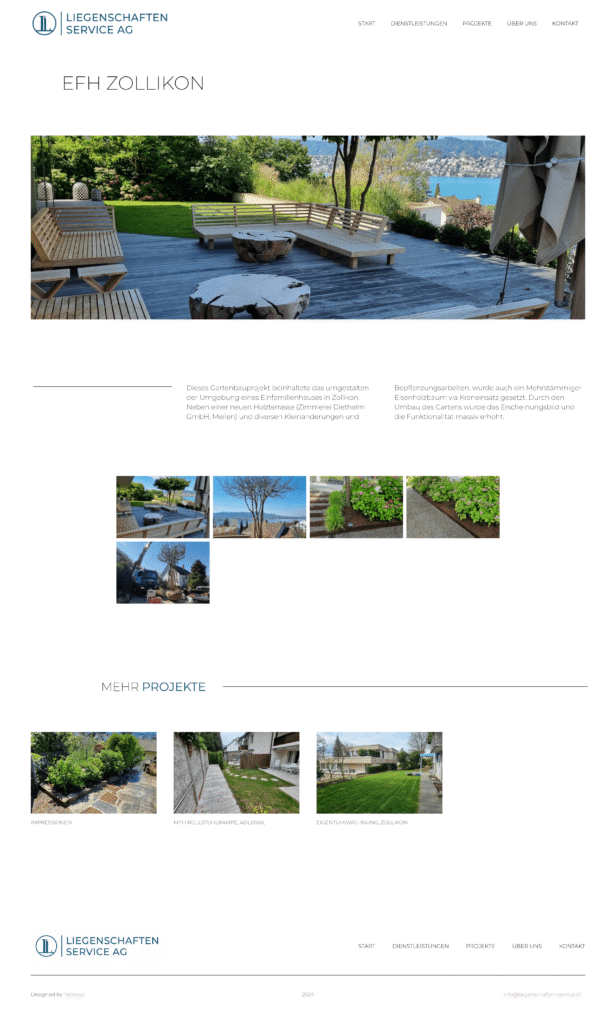 Für Liegenschaften-Service.ch haben wir eine moderne Webseite gestaltet, die die umfassenden Dienstleistungen im Bereich Unterhalt und Pflege von Liegenschaften präsentiert. Die benutzerfreundliche Seite richtet sich speziell an Privateigentümer und Immobilienverwaltungen. Sie bietet eine klare Übersicht über alle angebotenen Services und betont die Professionalität und Zuverlässigkeit des Unternehmens.